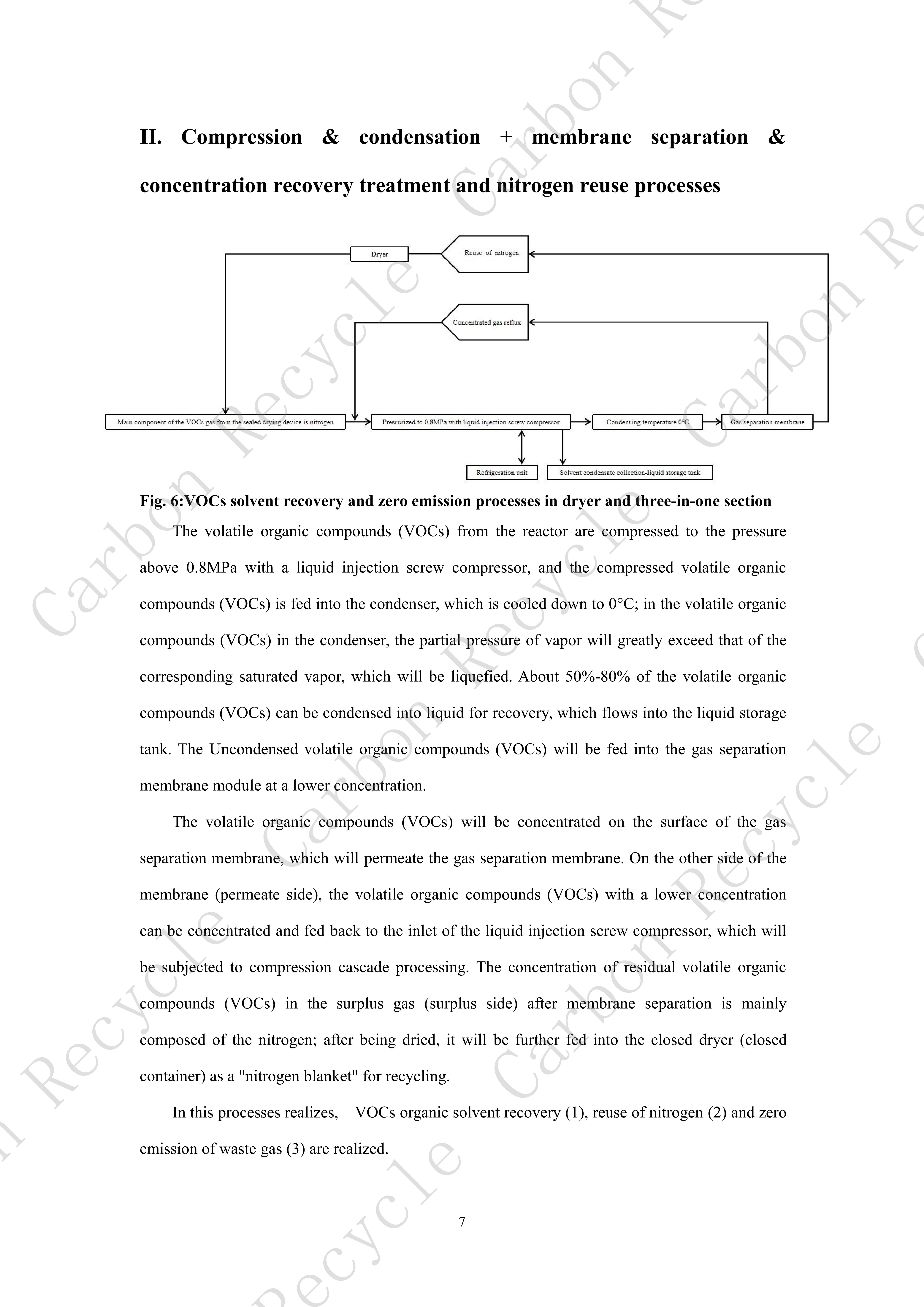 Compression & condensation + membrane separation & concentration recovery treatment and nitrogen reuse processes