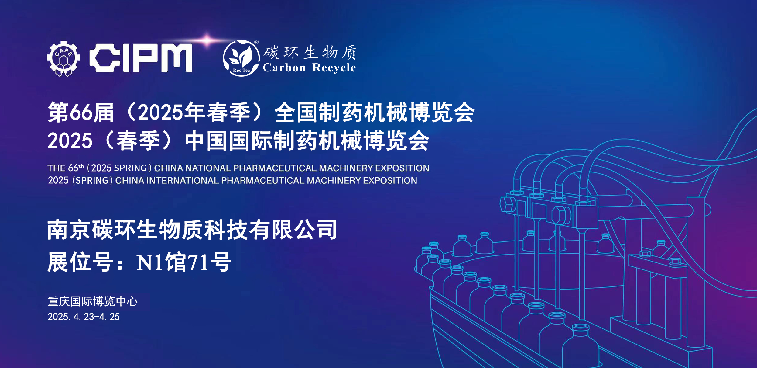南京碳環(huán)生物質(zhì)科技有限公司將于2025年4月23日-25日在重慶國(guó)際博覽中心參加第66屆(2025年春季)全國(guó)制藥機(jī)械博覽會(huì)暨2025(春季)中國(guó)國(guó)際制藥機(jī)械博覽會(huì),誠(chéng)摯邀請(qǐng)您蒞臨指導(dǎo)。